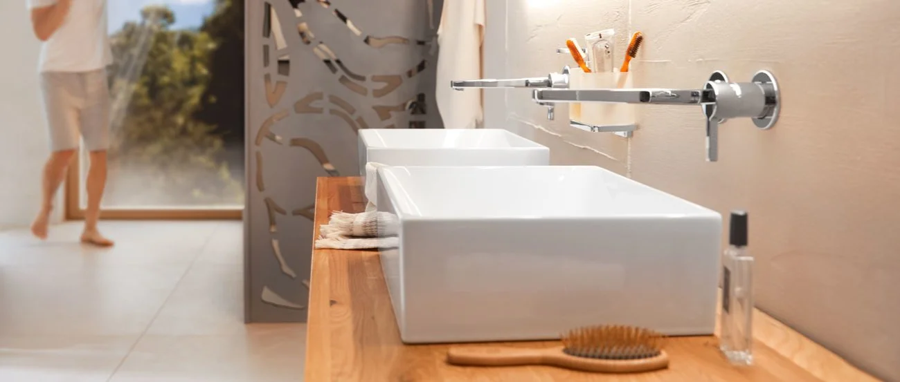 Wenn du zwei separate Aufsatzwaschbecken oder Einbauwaschbecken verwenden möchtest, fallen etwas höhere Kosten an, da jeweils die Rohrleitungen verlegt werden müssen und dadurch die Montageleistung durch den Fachhandwerker höher ist. Bei Renovierungen könnte also auch die Ausführung des Einzelwaschbeckens mit zwei Hahnlöchern/Armaturen interessant sein, denn hier wird nur ein Abfluss benötigt.